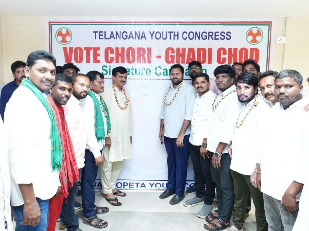 BDK: అశ్వారావుపేట పట్టణంలో గురువారం ఓటు చోరీ సిగ్నేచర్ క్యాంపెయిన్ కార్యక్రమాన్ని మంత్రి పొంగులేటి శ్రీనివాస్ రెడ్డి, ఎమ్మెల్యే జారే ఆదినారాయణతో కలిసి ప్రారంభించారు. వారితో పాటు రాష్ట్ర యువజన కాంగ్రెస్ కార్యదర్శి కోదండ రామారావు, మండల యూత్ కాంగ్రెస్ అధ్యక్షుడు నాగ కిషోర్, దమ్మపేట మండల అధ్యక్షుడు కాకా రమేష్ తదితరులు పాల్గొన్నారు.
