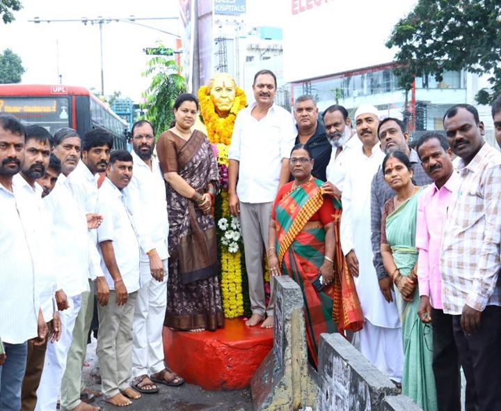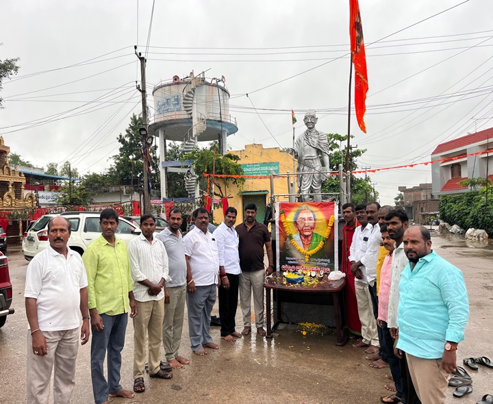RR: చాకలి ఐలమ్మ జయంతి సందర్భంగా షాద్నగర్ నియోజకవర్గం నందిగామ మండల కేంద్రంలో ఏఏంసీ డైరెక్టర్ చాకలి నరసింహా ఆధ్వర్యంలో ఆమె చిత్రపటానికి పూలమాలలు వేసి నివాళులర్పించారు. వారు మాట్లాడుతూ.. భూమి కోసం, భుక్తి కోసం, వెట్టిచాకిరి విముక్తి కోసం దొరలపై తిరగబడిన వీరనారి చాకలి ఐలమ్మ అన్నారు. కార్యక్రమంలో పలువురు గ్రామస్తులు పాల్గొన్నారు.