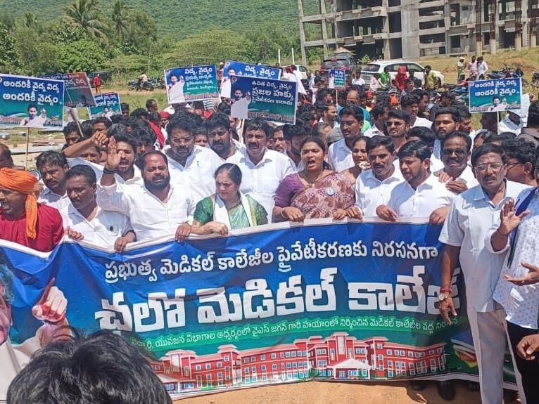 AKP: మెడికల్ కళాశాలలు ప్రైవేటీకరణకు వ్యతిరేకంగా మాకవరపాలెం మెడికల్ కళాశాల వద్ద వైసీపీ శ్రేణులు శుక్రవారం నిరసన ప్రదర్శన నిర్వహించారు. అప్పటి వైసీపీ ప్రభుత్వం తీసుకువచ్చిన మెడికల్ కళాశాలను ప్రభుత్వ రంగంలోనే కొనసాగించాలని డిమాండ్ చేశారు. నర్సీపట్నం నియోజకవర్గం పార్టీ సమన్వయకర్త గణేష్ ఆధ్వర్యంలో పలువురు నాయకులు ప్రభుత్వ నిర్ణయాన్ని దుయ్యపట్టారు.