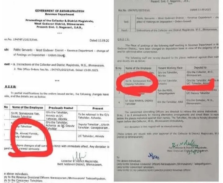 W.G: ఆకివీడు రెవెన్యూ కార్యాలయంలో బదిలీల గందరగోళం ఏర్పడింది. తహశీల్దార్ వెంకటేశ్వరరావును కలెక్టరేట్కు బదిలీ చేశారు. ఆయన స్థానంలో ముందుగా ఆచంట డిప్యూటీ తహశీల్దార్ సోమేశ్వరరావును ఇంఛార్జ్ తహశీల్దార్గా నియమిస్తూ ఉత్తర్వులిచ్చారు. అదే రోజు మళ్ళీ ఆదేశాలను రద్దు చేసి ఆకివీడు DT ఫరూక్కు బాధ్యతలిచ్చారు. దీనిపై పూర్తి వివరాలు తెలియాల్సి ఉంది