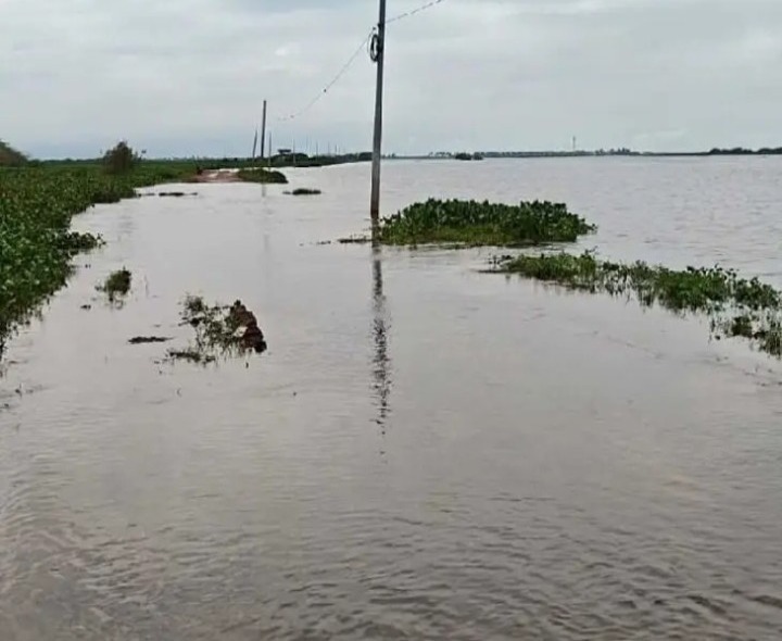 W.G: అల్పపీడన ప్రభావంతో 4 రోజులుగా కురుస్తున్న వర్షాలకు కొల్లేరు ఉద్ధృతంగా ప్రవహిస్తోంది. మండలంలో పెదయడ్లగాడి నుంచి పెనుమాకలంకకు వెళ్లే రహదారి రెండు చోట్ల నీటమునిగి, రోడ్డుపై నుంచి రెండు అడుగుల మేర ప్రవహిస్తోంది. ఎగువ నుంచి వరద నీరు కొల్లేరుకు చేరుతుండటంతో ఉద్ధృతి పెరిగింది. వంతెన వద్ద గుర్రపుడెక్కను తొలగించినా, సమస్య తిరిగి మొదటికొచ్చిందని వాపోతున్నారు.