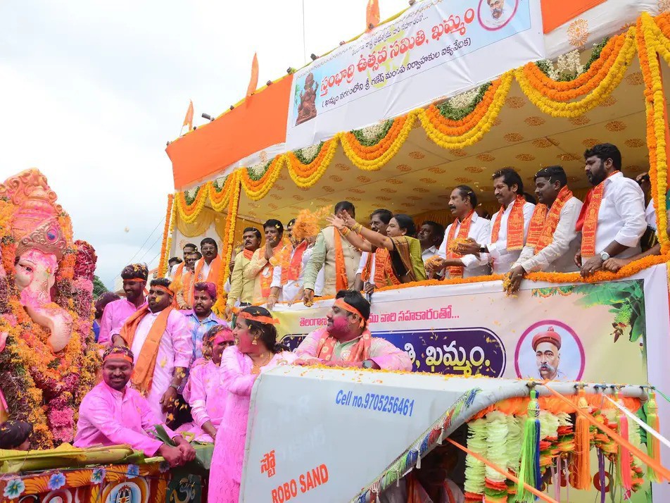 KMM: ఖమ్మం నగరం నలుమూలల నుంచి తరలివచ్చే గణనాథులకు గాంధీచౌక్ లో స్వాగతం పలికే విధంగా స్తంభాద్రి ఉత్సవ కమిటీ ఆధ్వర్యంలో ఏర్పాట్లు జరుగుతున్నాయి. మధ్యాహ్నం 3:30 గంటలకు గాంధీచౌక్ సెంటర్లో సార్వజనిక గణేష్ నిమజ్జన వీడ్కోలు బహిరంగ సభ నిర్వహించేందుకు ఏర్పాట్లు చేశారు. ఈ మేరకు సెంటర్లో లారీ ట్రక్కును వేదికగా మార్చి అలంకరించారు.