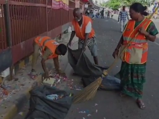 HYD: గణేశ్ మహా నిమజ్జనం సందర్భంగా జీహెచ్ఎంసీ సిబ్బంది క్షేత్రస్థాయిలో నిర్విఘ్నంగా స్వచ్ఛత కార్యక్రమాలు చేపడుతున్నారు. నిమజ్జనం జరిగే ప్రదేశాల్లో చెత్త, పూలమాలలు, కలర్ పేపర్స్, ఇతర వ్యర్థాలను తక్షణమే తొలగిస్తూ, పారిశుద్ధ్యాన్ని కాపాడుతున్నారు. 15 వేల మంది సానిటేషన్ సిబ్బంది 24×7 విధుల్లో ఉండగా, అధికారులు స్వయంగా పర్యవేక్షణ నిర్వహిస్తున్నారు.