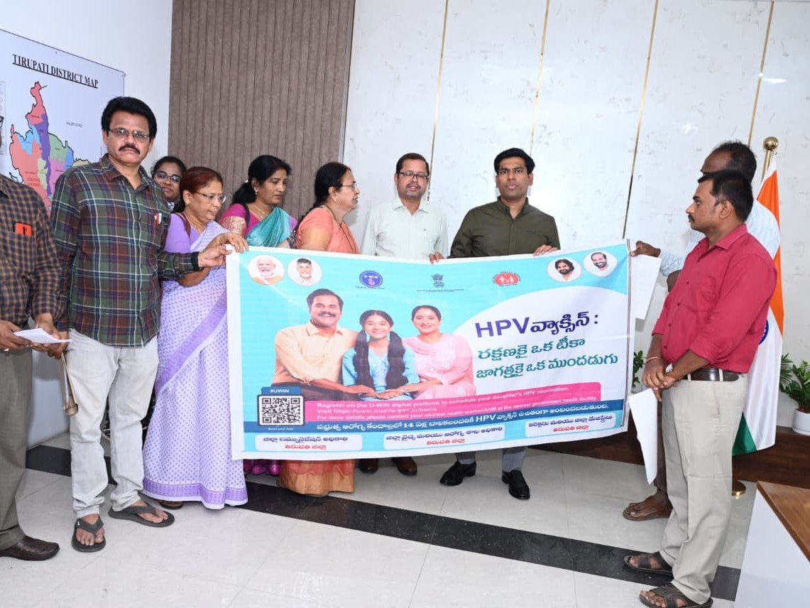 TPT: గర్భాశయ ముఖ క్యాన్సర్ నివారణకు 14 సంవత్సరాల బాలికలకు అందించనున్న HPV టీకా అవగాహన బ్యానర్ను కలెక్టర్ డా. ఎస్. వెంకటేశ్వర్ సోమవారం కలెక్టరేట్లో ఆవిష్కరించారు. జిల్లా వైద్య ఆరోగ్య శాఖ ఆధ్వర్యంలో ఈ టీకా కార్యక్రమం నిర్వహించనున్నట్లు తెలిపారు. ఈ కార్యక్రమంలో డీఎంహెచ్వో డా. బాలకృష్ణ నాయక్, జిల్లా ఇమ్యునైజేషన్ అధికారి డా. శాంతకుమారి పాల్గోన్నారు.