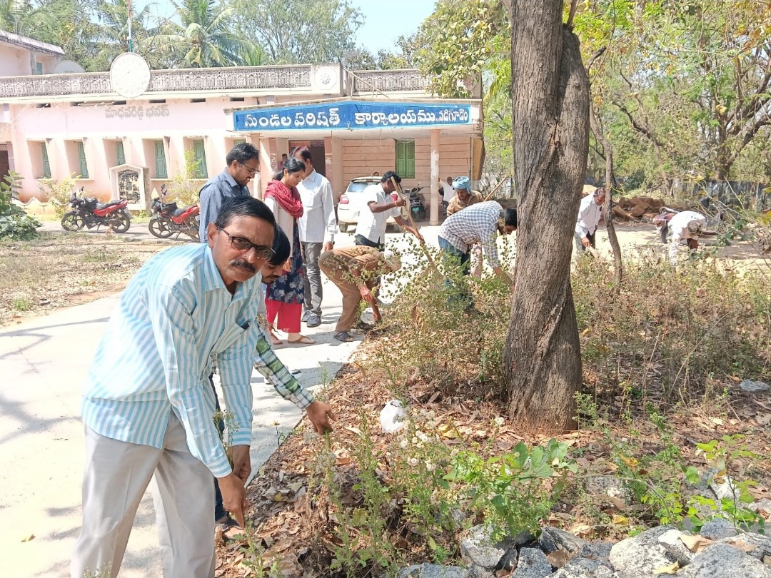 SRPT: ‘ప్రజా పాలన – ప్రగతి ప్రణాళిక’ కార్యక్రమంలో భాగంగా ఇవాళ నడిగూడెం మండల పరిషత్ కార్యాలయ ఆవరణలో పారిశుద్ధ్య కార్యక్రమం నిర్వహించారు. ఈ సందర్భంగా ఎంపీడీఓ ఎల్. మల్సూర్, సర్పంచ్ దున్న శ్రీనివాసులు ఆధ్వర్యంలో సిబ్బంది అందరూ కలిసి కార్యాలయ పరిసరాలను శుభ్రం చేశారు. కార్యాలయ ఆవరణలోని వ్యర్థాలను, పిచ్చి మొక్కలను తొలగించి బ్లీచింగ్ పౌడర్ చల్లించారు.