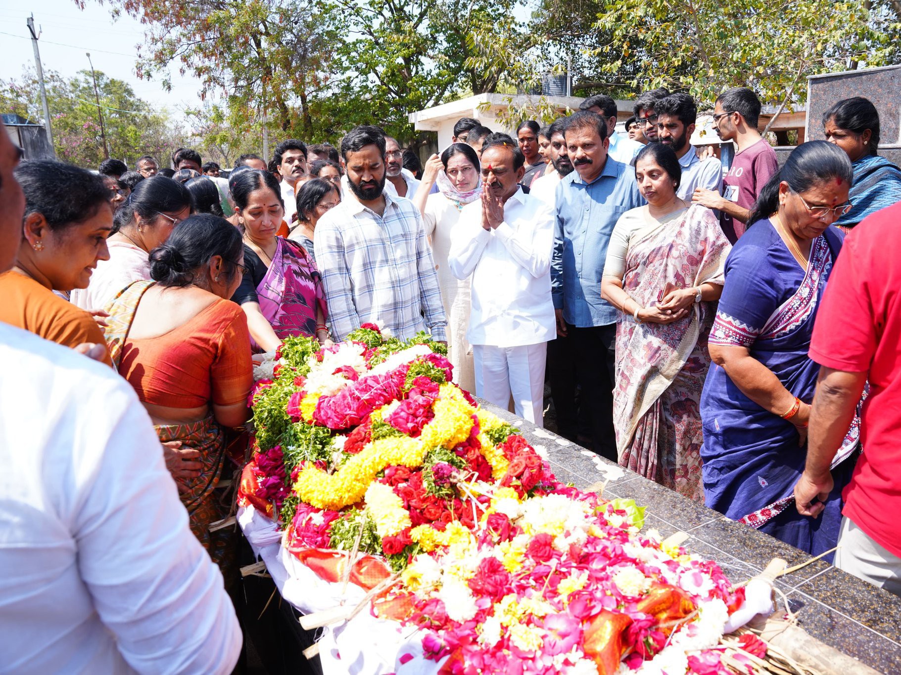RR: జిల్లా బీజేపీ అధ్యక్షులు వనిపల్లి శ్రీనివాస్ రెడ్డి మాతృమూర్తి వనిపల్లి భారతి దేవి మృతి చెందారు. ఈ విషయాన్ని తెలుసుకున్న ఎంపీ ఈటల రాజేందర్ భారతి దేవి అంత్యక్రియల్లో పాల్గొన్నారు. సాహెబ్ నగర్ శ్మశానవాటికలో భారతీ దేవి పార్థివ దేహానికి పూలమాల వేసి నివాళులు అర్పించారు. అనంతరం కుటుంబ సభ్యులను పరామర్శించి ప్రగాఢ సానుభూతి తెలిపారు.