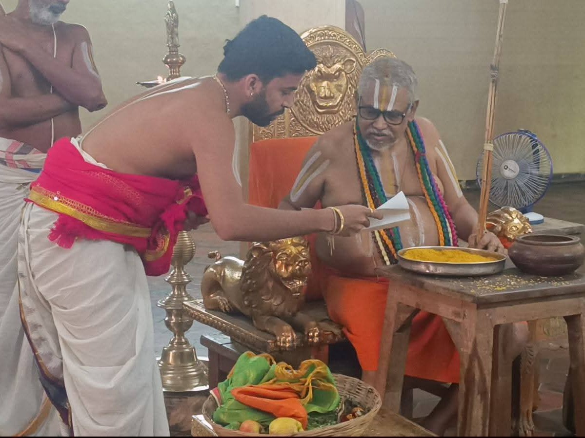 ATP: తాడిపత్రిలోని చింతల వెంకటరమణస్వామి దేవస్థానాన్ని సందర్శించాలని అహోబిల మఠం పీఠాధిపతులు శ్రీ రంగనాథ యతీంద్ర మహాదేశికులను ఆలయ అర్చకులు శ్రీ చింతలరాయన్ ఆహ్వానించారు. అహోబిలంలో పీఠాధిపతిని కలిసి స్వామివారి మర్యాద మాలను సమర్పించారు. ఈ సందర్భంగా ఇంటింటికి తిరుప్పావై సేవ కార్యక్రమ నిర్వహణ తీరుపై పీఠాధిపతితో చర్చించారు.
