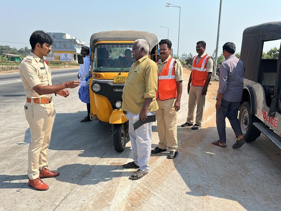 బాపట్ల జిల్లా ఎస్పీ బి. ఉమా మహేశ్వర్ ఆదేశాల మేరకు రోడ్డు ప్రమాదాల నివారణ చర్యల్లో భాగంగా శుక్రవారం చందోలు పోలీస్ స్టేషన్ పరిధిలోని రెడ్డిపాలెం టోల్ ప్లాజా వద్ద ఎస్సై మర్రి వెంకట శివకుమార్ వాహనాల తనిఖీ నిర్వహించారు. ఆటోల్లో పరిమితికి మించి ప్రయాణికులను ఎక్కించడం నేరమని, వాహనదారులు తప్పనిసరిగా రోడ్డు భద్రతా నియమాలు పాటించాలని సూచించారు.