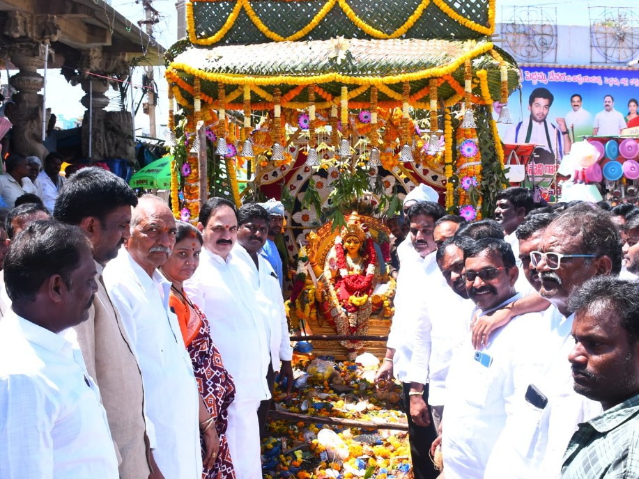 NDL: బనగానపల్లె(మం) టంగుటూరులో ఇవాళ మాజీ ఎమ్మెల్యే కాటసాని రామిరెడ్డి ఆయన సతీమణి కాటసాని జయమ్మ కలిసి పర్యటించారు. గ్రామానికి చేరుకున్న మాజీ ఎమ్మెల్యే దంపతులకు స్థానిక వైసీపీ నాయకులు పూలతో ఘనస్వాగతం పలికారు. అనంతరం మాజీ ఎమ్మెల్యే దంపతులు పెద్దమ్మ జాతరలో పాల్గొని అమ్మవారిని దర్శించుకున్నారు.