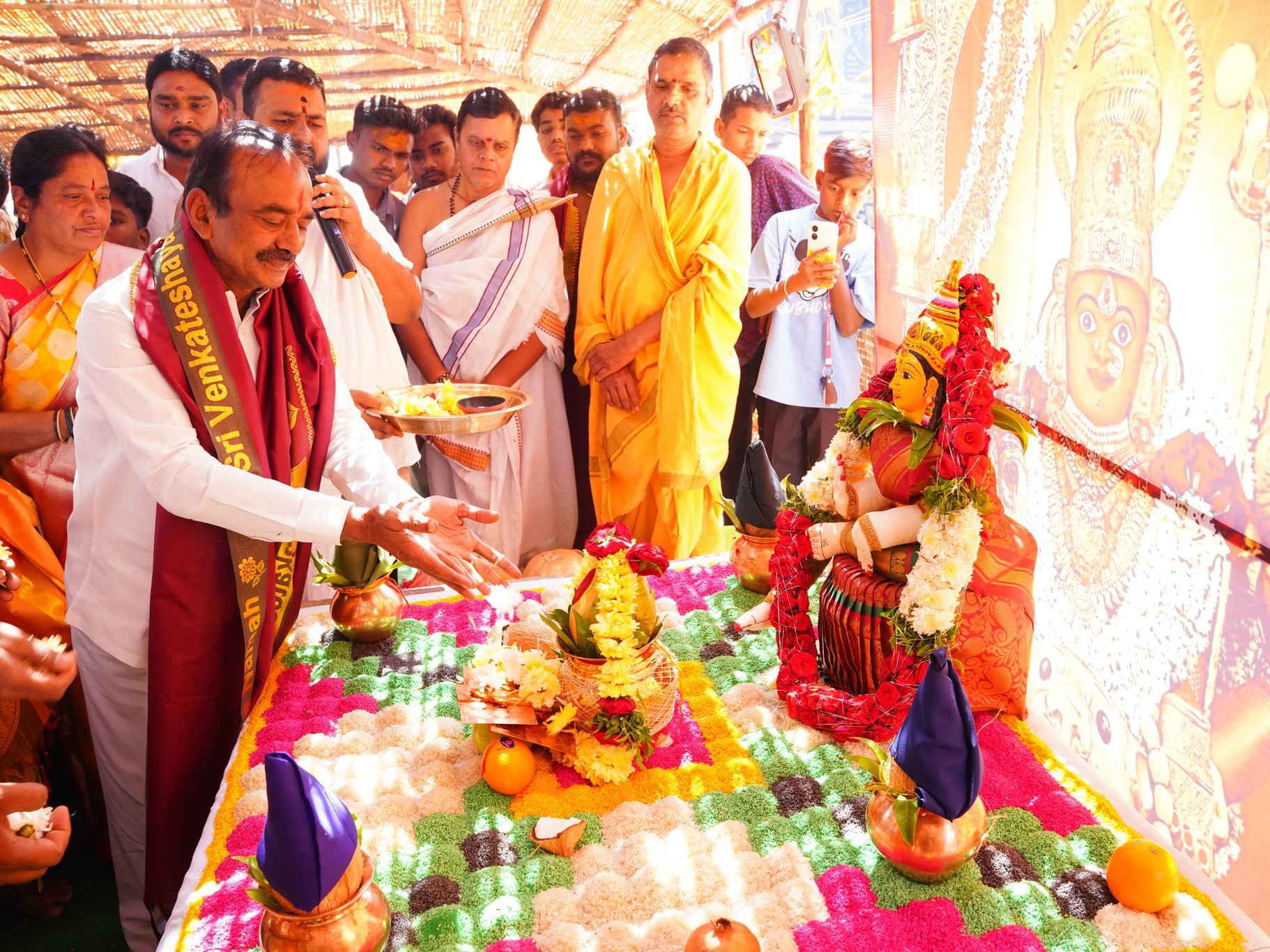 MDCL: ముడుచింతలపల్లి గ్రామంలో శ్రీశ్రీశ్రీ పెద్దమ్మ తల్లి విగ్రహ ప్రతిష్టా మహోత్సవాన్ని నిర్వహించారు. ఈ కార్యక్రమానికి ముఖ్య అతిథిగా ఎంపీ ఈటల రాజేందర్ హాజరయ్యారు. ఈ సందర్భంగా అమ్మవారికి పూజలు నిర్వహించారు. అనంతరం ఎంపీ మాట్లాడుతూ.. మన సంస్కృతి, సంప్రదాయాలను కాపాడుకుంటూ సమాజ ఐక్యత కోసం కృషి చేయాలన్నారు.