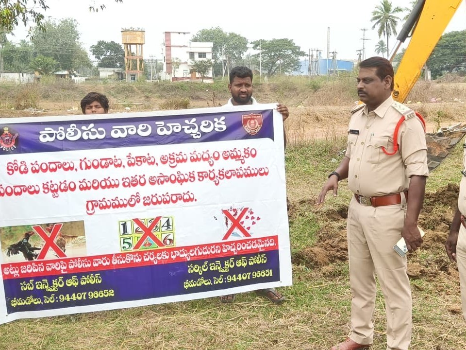 ELR: భీమడోలు మండలం పూళ్ళు గ్రామంలో పలు ప్రాంతాల్లో శనివారం పోలీసులు దాడులు నిర్వహించారు. భీమడోలు ఇన్స్పెక్టర్ యు జే విల్సన్ మాట్లాడుతూ.. జూదం వల్ల కుటుంబాలు ఆర్థికంగా చితికి పోతాయని, ప్రజలు ఇటువంటి అసాంఘిక కార్యకలాపాలకు దూరంగా ఉండి పండుగను కుటుంబ సభ్యులతో ఆనందంగా జరుపుకోవాలన్నారు. కోడి పందేల నిర్వహణ కోసం సిద్ధం చేసిన బరిలను ధ్వంసం చేశారు.