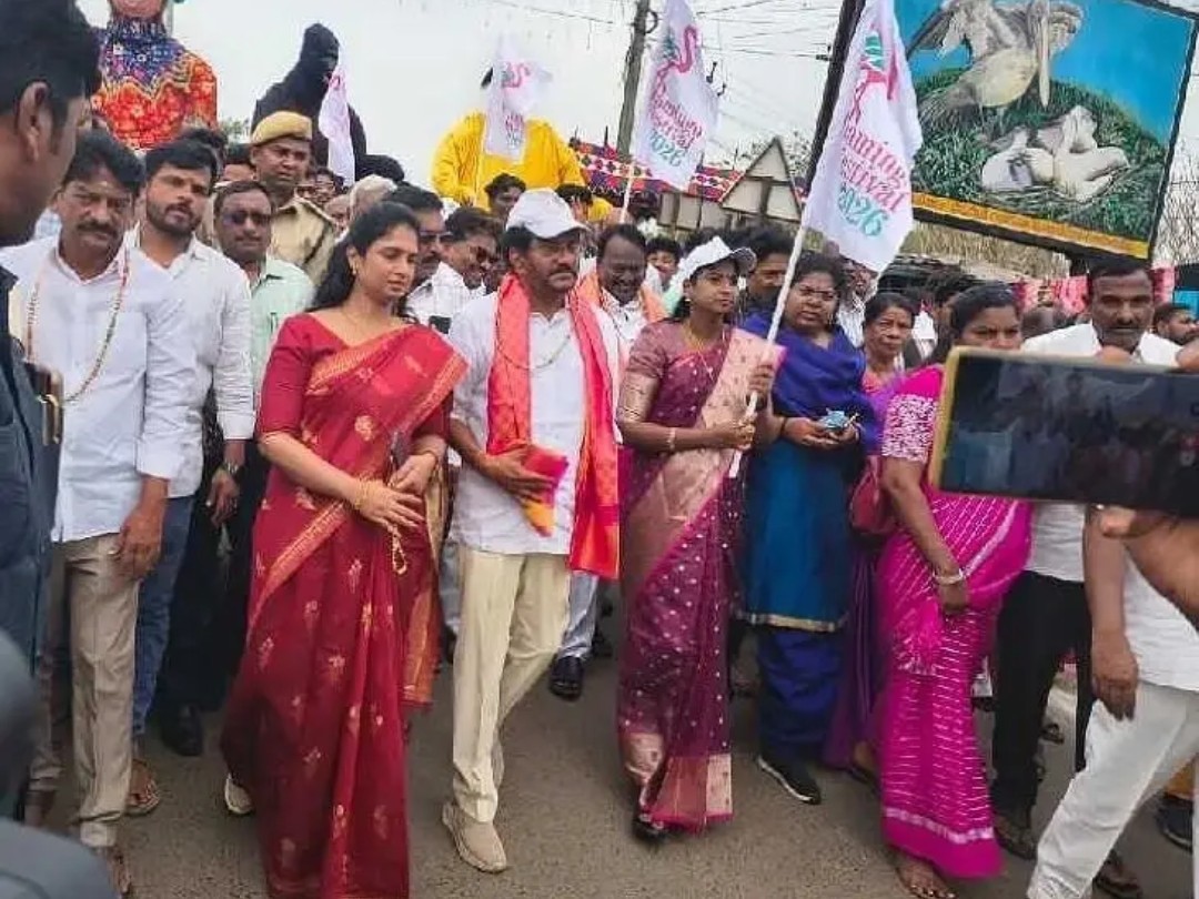 TPT: సూళ్లూరుపేటలో ఇవాల్టి నుంచి జరుగుతున్న ఫ్లెమింగో ఫెస్టివల్ మొదటి ఘట్టం శోభాయాత్రకు నెల్లూరు జిల్లా సర్వేపల్లి ఎమ్మెల్యే సోమిరెడ్డి చంద్రమోహన్ రెడ్డి హాజరయ్యారు. ముందుగా పట్టణంలోని హోలీ క్రాస్ సర్కిల్ నుంచి ఎమ్మెల్యే విజయశ్రీ, మాజీ ఎంపీ నెలవలతో కలిసి ఆయన ర్యాలీగా డిగ్రీ కాలేజ్ గ్రౌండ్స్ వరకు వెళ్లారు. ఈ శోభాయాత్రలో మహిళలు, అధికారులు పాల్గొన్నారు.