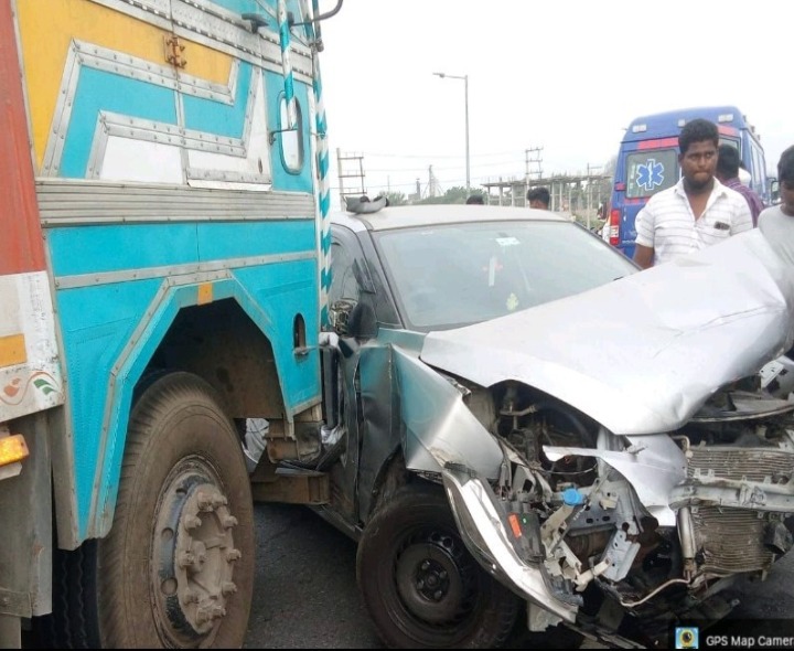 ప్రకాశం: ఒంగోలు నుంచి విజయవాడ వైపు వెళుతున్న కారు శనివారం మద్దిపాడు వద్ద లారీని క్రాస్ చేస్తుండగా ప్రమాదానికి గురైంది. వేగాన్ని అధిగమించలేక కారు లారీకి అడ్డు రాగా, లారీ కారును కొంత దూరం ఈడ్చుకు వెళ్ళింది. అదృష్టవశాత్తు కారులో ఉన్న ప్రయాణికులకు ఎటువంటి గాయాలు జరగకపోవడంతో అందరూ ఊపిరి పీల్చుకున్నారు. సంఘటనా స్థలానికి చేరుకున్న పోలీసులు ట్రాఫిక్ను క్లియర్ చేశారు.