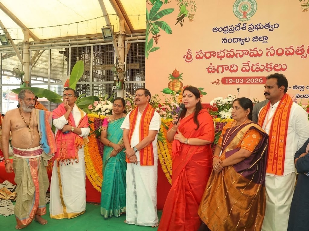 NDL: శ్రీ పరాభవ నామ సంవత్సర ఉగాది సందర్భంగా శ్రీశైలంలో ఉత్సవాలు అత్యంత వైభవంగా గురువారం నిర్వహించారు. రాష్ట్ర ప్రభుత్వ ఆదేశాల మేరకు జిల్లా యంత్రాంగం ఆధ్వర్యంలో దేవస్థానం అలంకార మండపంలో కార్యక్రమాలు ఘనంగా జరిగాయి. ఈ సందర్భంగా జిల్లా కలెక్టర్ రాజకుమారి జిల్లా అభివృద్ధి పథంలో ముందుకు సాగాలని ఆకాంక్షించారు. అలాగే, ప్రజలకు ఉగాది శుభాకాంక్షలు తెలియజేశారు.