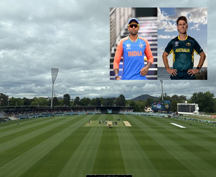 భారత్-ఆస్ట్రేలియా తొలి టీ20 మ్యాచ్కు వర్షం అంతరాయం కలిగించింది. దీంతో అంపైర్లు మ్యాచ్ను ప్రతి ఇన్నింగ్స్కు 18 ఓవర్లకు కుదించారు. దీంతో ముగ్గురు బౌలర్లు 4 ఓవర్లు, ఇద్దరు బౌలర్లు 3 ఓవర్లు బౌలింగ్ చేయవచ్చు. పవర్ ప్లేను 5.2 ఓవర్లకు నిర్ణయించారు. ఈ మ్యాచ్ మధ్యాహ్నం 3:00 గంటలకు ప్రారంభం కానుంది.