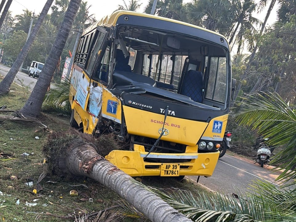 కోనసీమ: సఖినేటిపల్లి మండలం రాంబాగ్ దగ్గర శ్రీ చైతన్య స్కూల్ బస్సు అతి వేగంతో వచ్చి కొబ్బరి చ