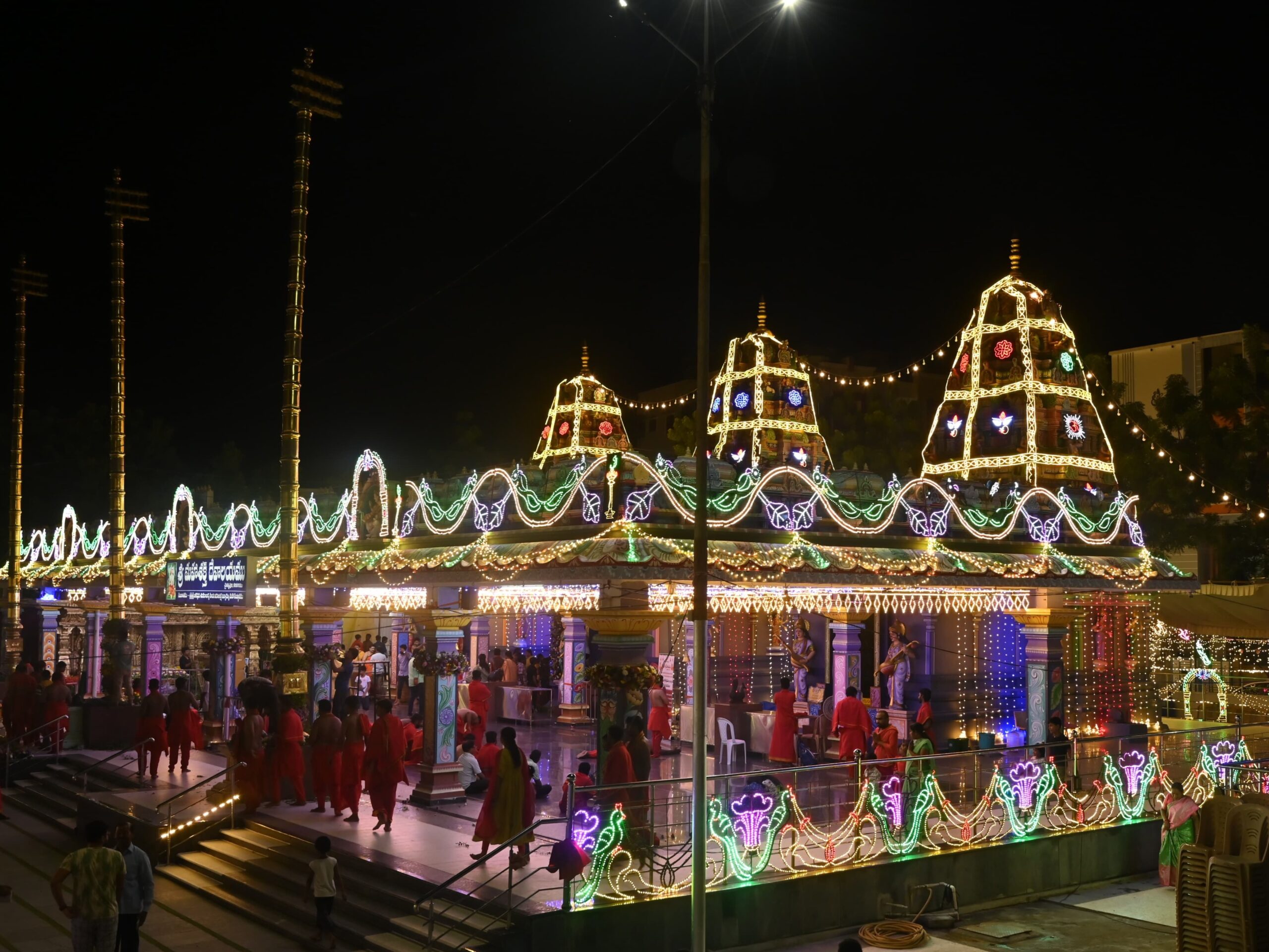 KNR: దీపావళి పర్వదిన మహోత్సవానికి కరీంనగర్లోని మహిమాన్విత దివ్య క్షేత్రం శ్రీ మహాశక్తి దేవాలయం శరవేగంగా ముస్తాబవుతుంది. శ్రీ మహాదుర్గ, శ్రీ మహాలక్ష్మి, శ్రీ మహాసరస్వతి అమ్మవార్ల కొలువుదీరిన దేవాలయంలో ఏర్పాట్లు జరుగుతున్నాయి. ఆలయాన్ని రంగు రంగుల పూలు విద్యుత్ దీపాలతో అలంకరణ చేశారు.