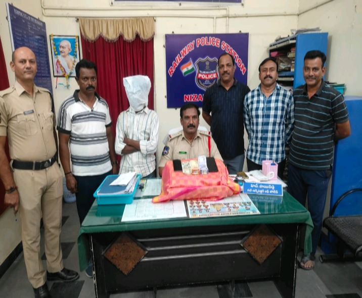 NZB: రైలులో చోరీకి పాల్పడుతున్న నిందితుడిని పోలీసులు అరెస్టు చేసి రిమాండ్కు తరలించినట్లు నిజామాబాద్ రైల్వే ఎస్సై సాయి రెడ్డి తెలిపారు. రైల్వే పోలీస్ స్టేషన్లో ఏర్పాటు చేసిన విలేకరుల సమావేశంలో ఆయన మాట్లాడారు. మంచిర్యాలకు చెందిన షేక్ యూసుఫ్ రైలులో దొంగతనాలకు పాల్పడుతుండగా అతిన్ని అరెస్టు చేసి రిమాండ్కు తరలించామన్నారు.