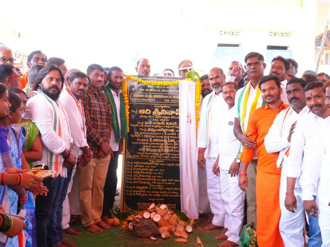 JGL: కథలాపూర్ మండలం పోసానిపేట, చింతకుంట గ్రామాల్లో 30 లక్షలతో నిర్మిస్తున్న మూడు మహిళా సమైక్య సంఘం నూతన భవనాల నిర్మాణానికి రాష్ట్ర ప్రభుత్వ విప్ ఆది శ్రీనివాస్ ముఖ్యఅతిథిగా హాజరై శంకుస్థాపన నిర్వహించారు. ఈ సందర్భంగా ఆయన మాట్లాడుతూ.. గ్రామీణ అభివృద్ధిలో మహిళల పాత్ర అత్యంత కీలకమని, మహిళా సమైక్య సంఘాల బలోపేతం ద్వారా కుటుంబాల ఆర్థిక స్థితి మెరుగుపడుతుందని అన్నారు.