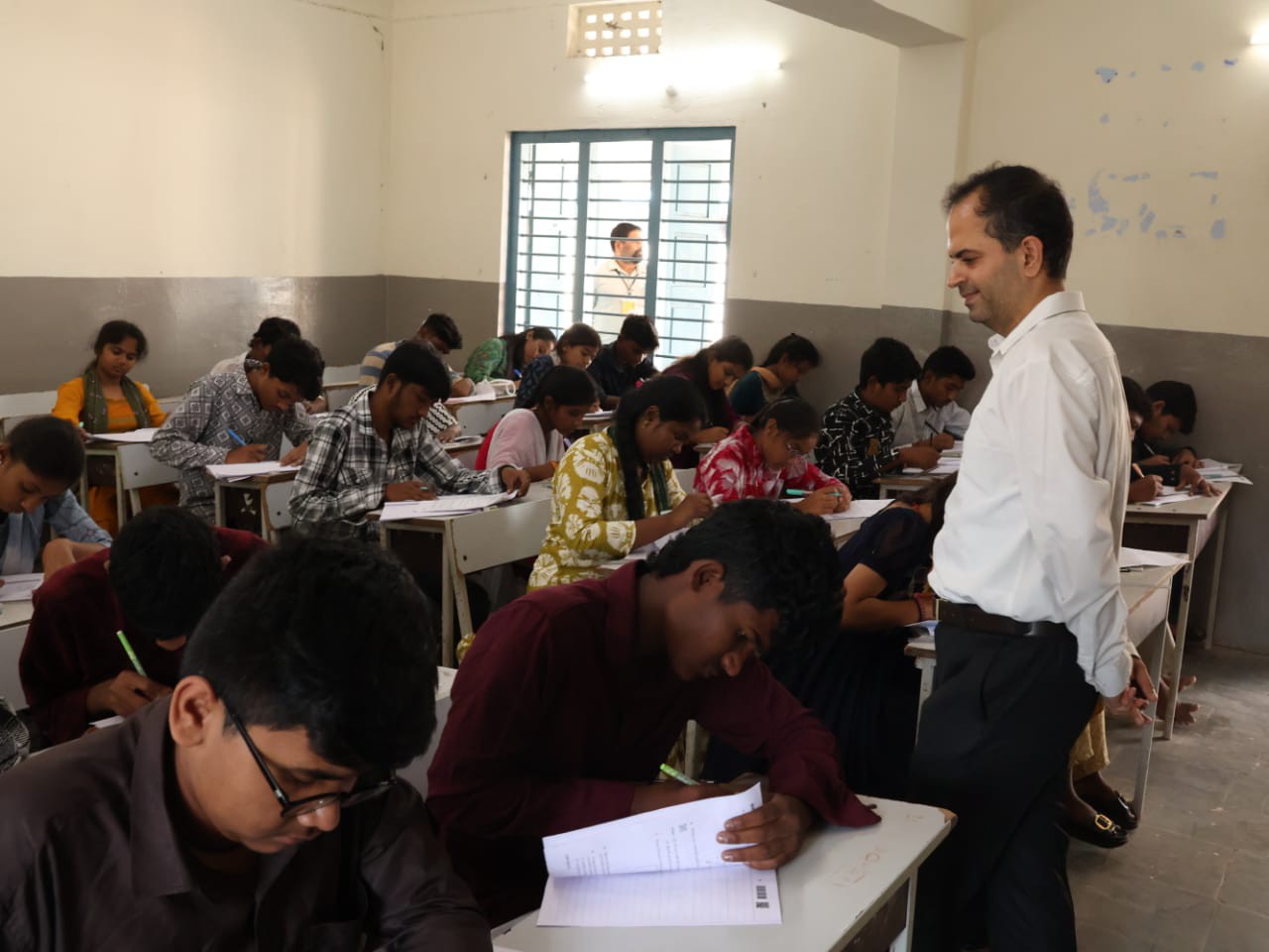 BHPL: జిల్లా కేంద్రంలోని ZP హైస్కూల్లో నిర్వహిస్తున్న 10వ తరగతి పరీక్షా కేంద్రాన్ని శనివారం జిల్లా కలెక్టర్ రాహుల్ శర్మ ఆకస్మికంగా తనిఖీ చేశారు. ఈ సందర్భంగా చీఫ్ సూపరింటెండెంట్ లక్ష్మి ప్రసన్నను పరీక్షలకు హాజరైన విద్యార్థుల సంఖ్య వివరాలు అడిగి తెలుసుకున్నారు. కలెక్టర్ పరీక్షా కేంద్రంలో ఏర్పాటు చేసిన ఆరోగ్య శిబిరాన్ని కూడా పరిశీలించారు.