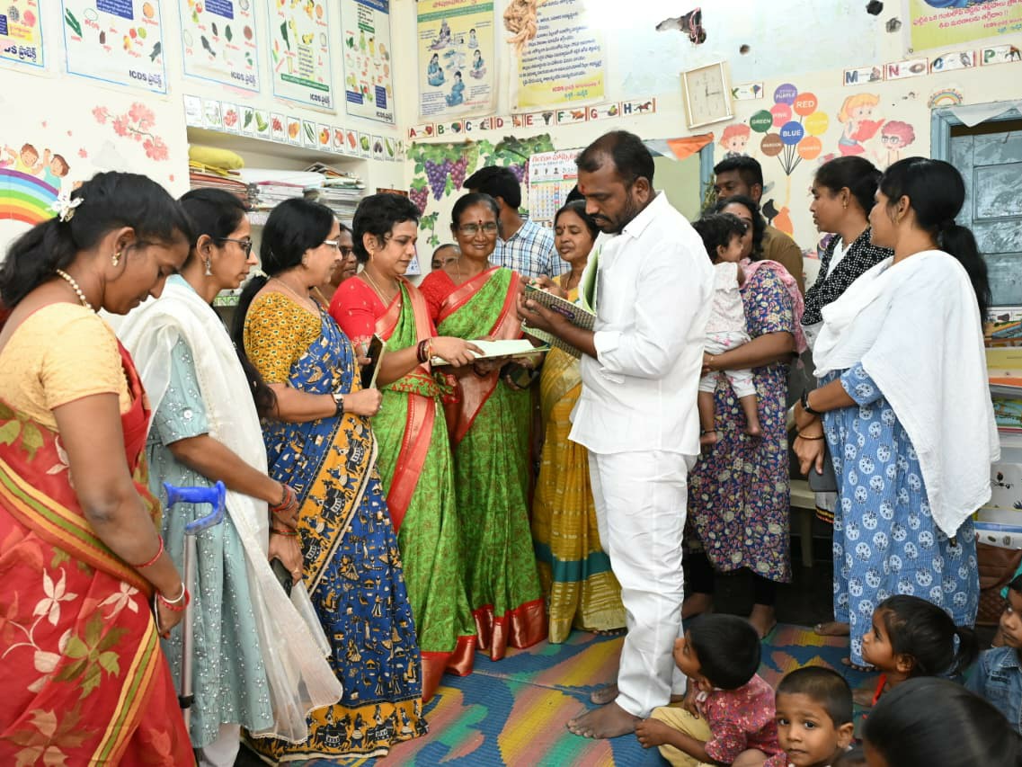 KNR: కరీంనగర్లోని తీగలగుట్టపల్లిలో ‘సాక్షం’ అంగన్వాడీ కేంద్రంలో వాటర్ ప్యూరిఫైర్ను మేయర్ కొలగాని శ్రీనివాస్ ప్రారంభించారు. జిల్లాలోని 269 కేంద్రాల్లో ఒక్కోదానికి రూ.లక్షతో టీవీలు, పోషణ వాటికలు, రైన్ వాటర్ హార్వెస్టింగ్ ఏర్పాటు చేస్తున్నట్లు తెలిపారు. చిన్నారుల హాజరు శాతం పెంచాలని కోరుతూ విద్యార్థులకు ప్రోగ్రెస్ కార్డులు అందజేశారు.