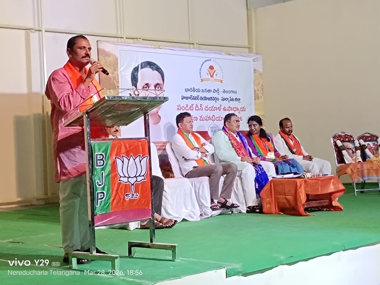 SRPT: నేరేడుచర్ల పట్టణంలోని SKS ఫంక్షన్ హాల్లో ఆదివారం హుజూర్ నగర్ నియోజకవర్గ స్థాయి ‘దీన్ దయాళ్ ఉపాధ్యాయ ప్రశిక్షణ మహాభియాన్ – 2026’ శిక్షణ తరగతులు నిర్వహించారు. జిల్లా బీజేపీ అధ్యక్షురాలు చల్లా శ్రీలతారెడ్డి అధ్యక్షతన జరిగిన ఈ కార్యక్రమానికి చంద్రశేఖర్ జీ. నేతలు రవి, సైదిరెడ్డి, భాగ్యరెడ్డి హాజరై ప్రసంగించారు.