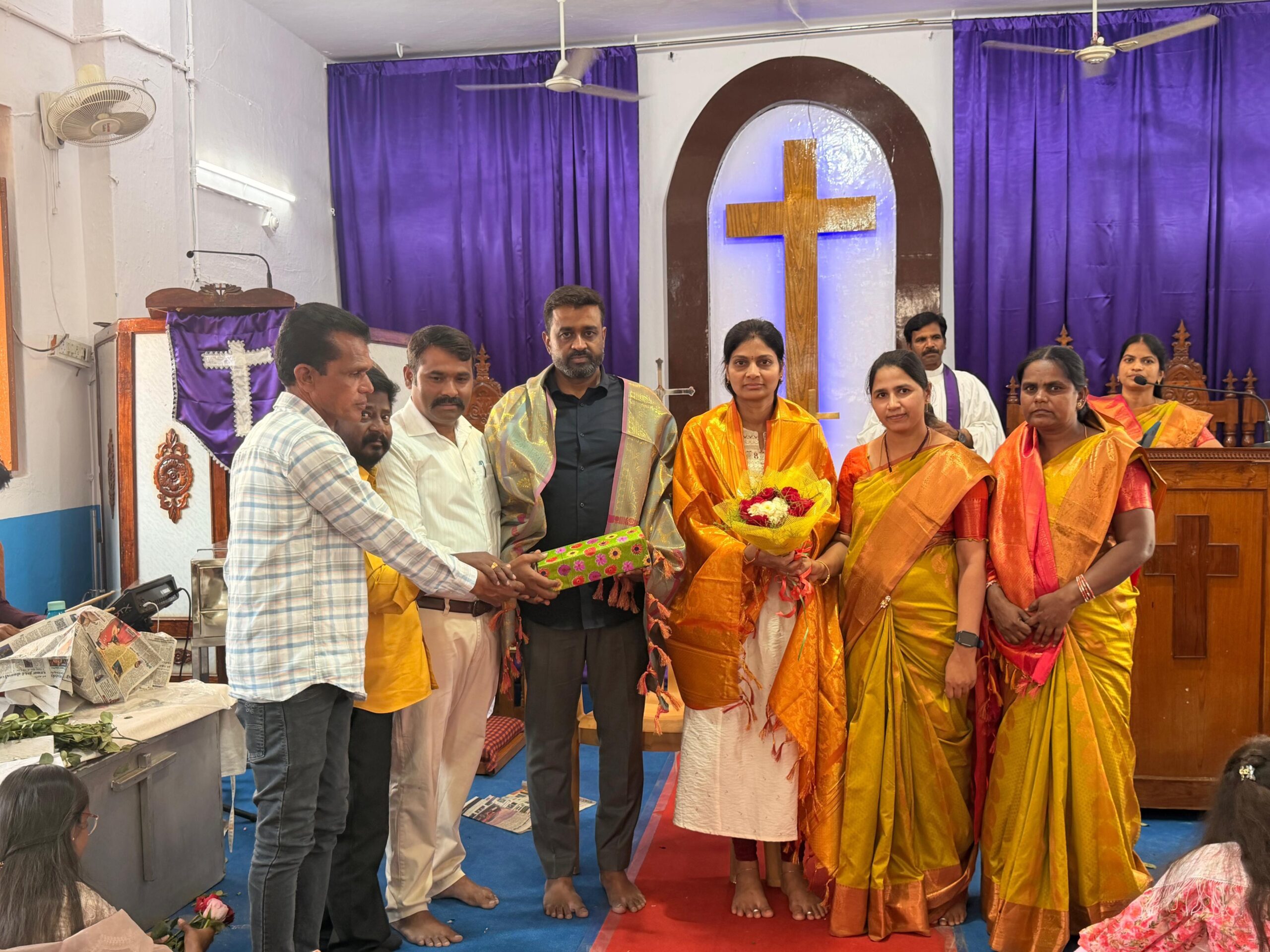 KMR: అంతర్జాతీయ మహిళా దినోత్సవం సందర్భంగా KMR జిల్లా కేంద్రంలోని సీఎస్ఐ చర్చిలో జరిగిన ప్రత్యేక కార్యక్రమంలో పాల్గొన్న ఛైర్ పర్సన్ ఇప్ప ఉమారాణి శ్రీనివాస్ గారికి చర్చి ఫాదర్ జోసఫ్ కీశోర్, శ్రీలత కిషోర్ ఆధ్వర్యంలో ఘనంగా షాలువాతో సత్కరించి శుభాకాంక్షలు తెలియజేశారు. అనంతరం చర్చి ఫాదర్ ప్రత్యేక ప్రార్ధనలతో ఛైర్ పర్సన్కు ఆశీర్వాదాలు అందచేశారు.