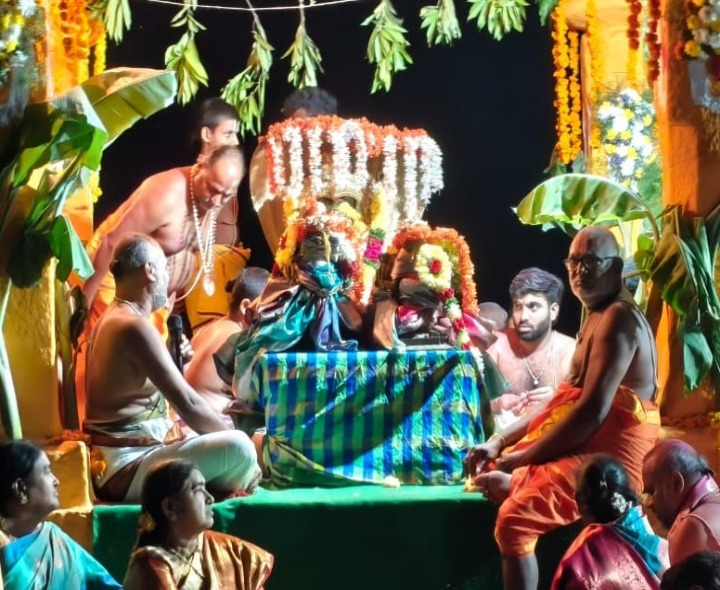 SRPT: కోదాడ పట్టణ పరిధిలోని మూడో వార్డు తమ్మరబండపాలెం గ్రామంలో శ్రీ బాలాజీ వెంకటేశ్వర స్వామి దేవస్థానంలో మంగళవారం తెల్లవారుజామున శ్రీవారి కళ్యాణ మహోత్సవం వేద పండితుల నడుమ వైభవంగా నిర్వహించారు. ఆలయ అనువంశిక ధర్మకర్త వేణుగోపాల చార్యులు అధ్యక్షతన కళ్యాణ మహోత్సవ వేలాది మంది భక్తుల నడుమ ఘనంగా నిర్వహించారు.