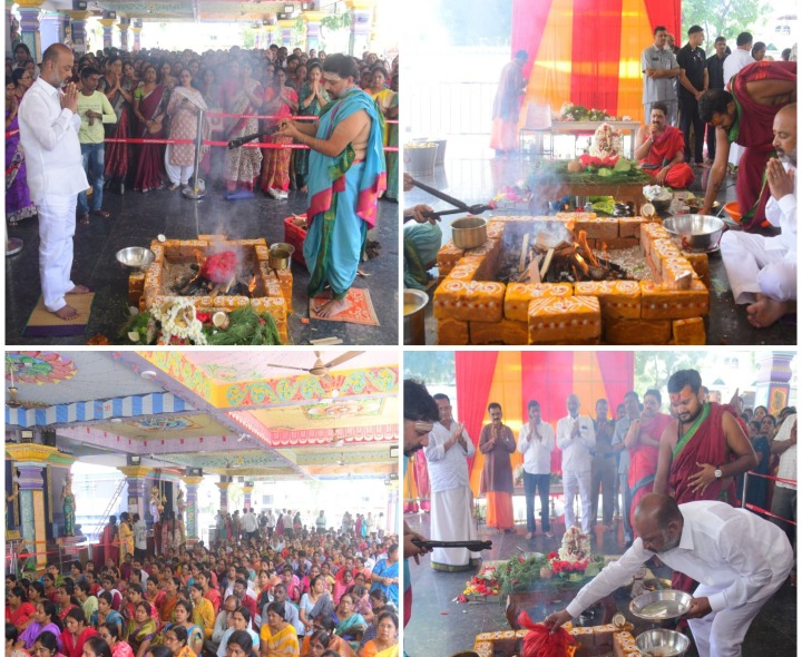 KNR: కరీంనగర్ పట్టణంలోని మహిమాన్విత భవ్య, దివ్య క్షేత్రం శ్రీ మహాశక్తి దేవాలయంలో శుక్రవారం సంకష్టి చతుర్దశి వేడుకలు వైభవంగా నిర్వహించారు. సంకష్ట సందర్భంగా దేవాలయంలో ప్రత్యేక పూజ, గణపతి హోమ కార్యక్రమాలను ఘనంగా చేపట్టారు. ఆయా ప్రత్యేక పూజ, గణపతి హోమ కార్యక్రమాల్లో కేంద్ర మంత్రివర్యులు బండి సంజయ్ కుమార్లతోపాటు అశేష సంఖ్యలో భక్తులు పాల్గొన్నారు.