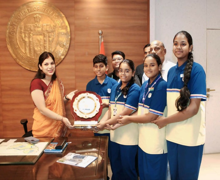 KNR: కేంద్రంలోని ఈనెల 6, 7వ తేదీలలో రాష్ట్ర విద్యాశాఖ ఆధ్వర్యంలో హైదరాబాద్లోని రాజేంద్రనగర్లో జరిగిన రాష్ట్రస్థాయి కళా ఉత్సవ్ పోటీలలో 9వ తరగతికి చెందిన యన్. ప్రమధశ్రీ, యస్. శ్రీసాన్విక, కే. శ్రీవికాస్, కే. వైష్ణవి జాతీయ స్థాయి కళా ఉత్సవ్ (జాతీయస్థాయి) పోటీలకు ఎంపికైన పారమిత విద్యార్థులను ఈరోజు కలెక్టర్ పమేలా సత్పత్తి కలెక్టర్ కార్యాలయంలో అభినందించారు.