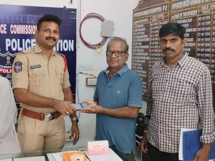 JN: దేవరుప్పుల మండలానికి చెందిన మునగాల ఉమా ప్రకాష్కు చెందిన సెల్ ఫోన్ ఇటీవల దొంగలించబడింది. దీంతో ఉమా ప్రకాష్ స్థానిక పోలీస్ స్టేషన్లో ఫిర్యాదు చేశాడు. దర్యాప్తు చేసిన పోలీసులు ఆ సెల్ ఫోన్ను కోదాడలో ఉన్నట్టుగా గుర్తించి, కోదాడ నుంచి తీసుకొచ్చి అతని ఫోన్ను ఎస్సై సృజన్ కుమార్ చేతుల మీదుగా బాధితుడికి మంగళవారం అప్పగించారు. యాకూబ్ తదితరులున్నారు.