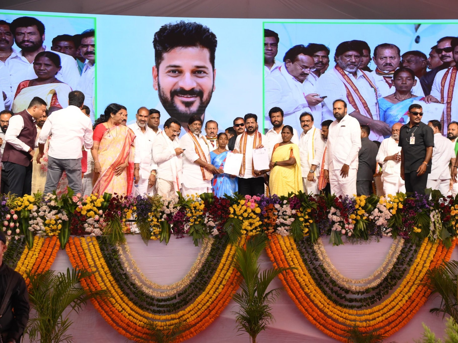 అసిఫాబాద్ జిల్లా ఇందిరమ్మ ఇళ్ల లబ్ధిదారులకు బజార్హత్నూర్ మండలం పిప్పిరి బహిరంగ సభలో జిల్లా కలెక్టర్ కె.హరిత ముఖ్యమంత్రి రేవంత్ రెడ్డి చేతుల మీదుగా ఇళ్ల పట్టాలను ఇప్పించారు. సీఎం మాట్లాడుతూ.. కాంగ్రెస్ ప్రభుత్వం వచ్చాకే నిరుపేదల సొంతింటి కల నెరవేరిందని అన్నారు. కలెక్టర్ హరిత నిర్మాణంలో ఉన్న ఇందిరమ్మ ఇళ్ళు త్వరగా పూర్తి చేయాలని సూచించారు.