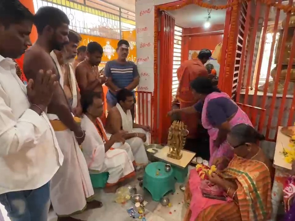 WGL: నగరంలోని కాశీబుగ్గలో గల శ్రీ రంగనాయక స్వామి దేవాలయంలో గల దక్షిణముఖ ఆంజనేయస్వామికి మంగళవారం ప్రత్యేక కార్యక్రమాలు చేపట్టారు. ఈ సందర్బంగా ఆంజనేయస్వామికి పంచామృతాలతో అభిషేకం నిర్వహించి, స్వామివారికి ఎంతో ఇష్టమైన అరటిపళ్ళతో అలంకరణ చేసారు. ఆలయ అభివృద్ధి కమిటీ మాజీ అధ్యక్షులు వంగర రవి,అర్చకులు ఆరుట్ల కృష్ణమాచార్యులు, భక్తులు, తదితరులున్నారు.