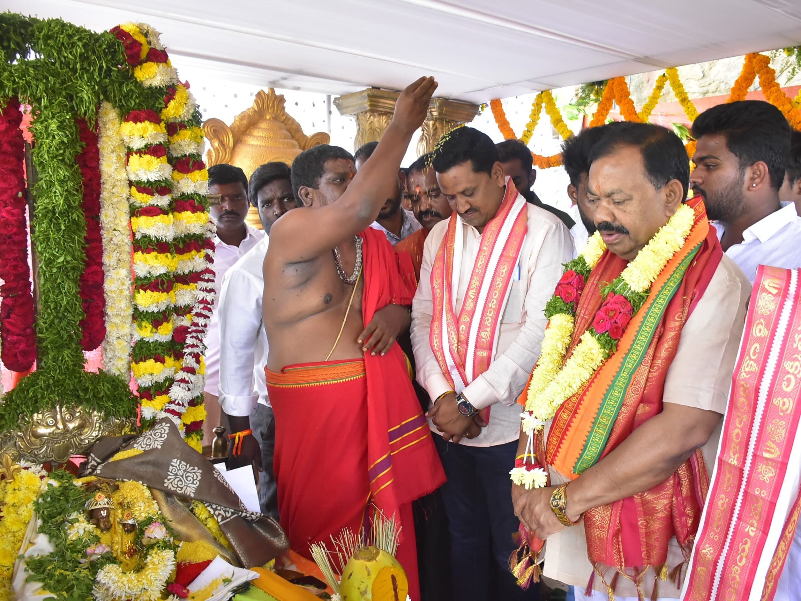 BHNG: భువనగిరి మండలం అనాజిపురం గ్రామంలో జరిగిన శ్రీ లక్ష్మీనరసింహస్వామి కళ్యాణ మహోత్సవానికి బీఆర్ఎస్ పార్టీ పార్లమెంట్ ఇన్ఛార్జ్ క్యామ మల్లేష్ హాజరయ్యారు. ఆలయ అర్చకులు ప్రత్యేక పూజలు నిర్వహించి, స్వామివారి ఆశీస్సులు అందజేశారు. ఈ కార్యక్రమంలో డా. ర్యాకల శ్రీనివాస్, బాతుక అశోక్, ఎదునూరి చంద్రయ్య, తదితర నాయకులు పాల్గొన్నారు.