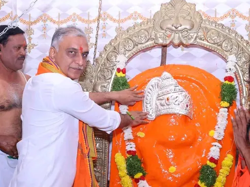 సిద్దిపేట రూరల్ పోలీస్ స్టేషన్ చౌరస్తాలో గల శ్రీ ఆంజనేయ స్వామి దేవాలయంలో మాజీ మంత్రి హరీష్ రావు స్వామి వారికి వెండి కిరీటాన్ని గురువారం సమర్పించారు. ఈ సందర్భంగా స్వయంగా స్వామి వారికి కిరీట ధారణ చేసి పూజలు నిర్వహించారు. విజయదశమి పర్వదినాన ప్రజలందరికీ అన్నింటా విజయం చేకూరాలని స్వామి వారిని ప్రార్థించినట్లు తెలిపారు.