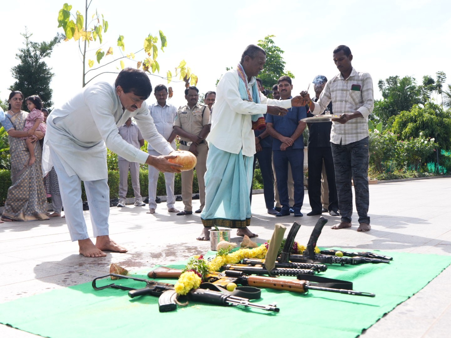 HYD: విజయదశమి సందర్భంగా నేడు HYDలో మంత్రి పొంగులేటి శ్రీనివాస్ రెడ్డి ఆయుధ పూజ నిర్వహించారు. మనకు ఆహారం అందించే హలం, మనం ప్రయాణించే వాహనం, దేశాన్ని కాపాడే ఆయుధం సాధనం ఏదైనా అది దైవస్వరూపమే అని మంత్రి అన్నారు. అర్జునుడు వనవాసంలో దాచిన తన ఆయుధాలను విజయ దశమి రోజునే తిరిగి పొందారన్నారు.