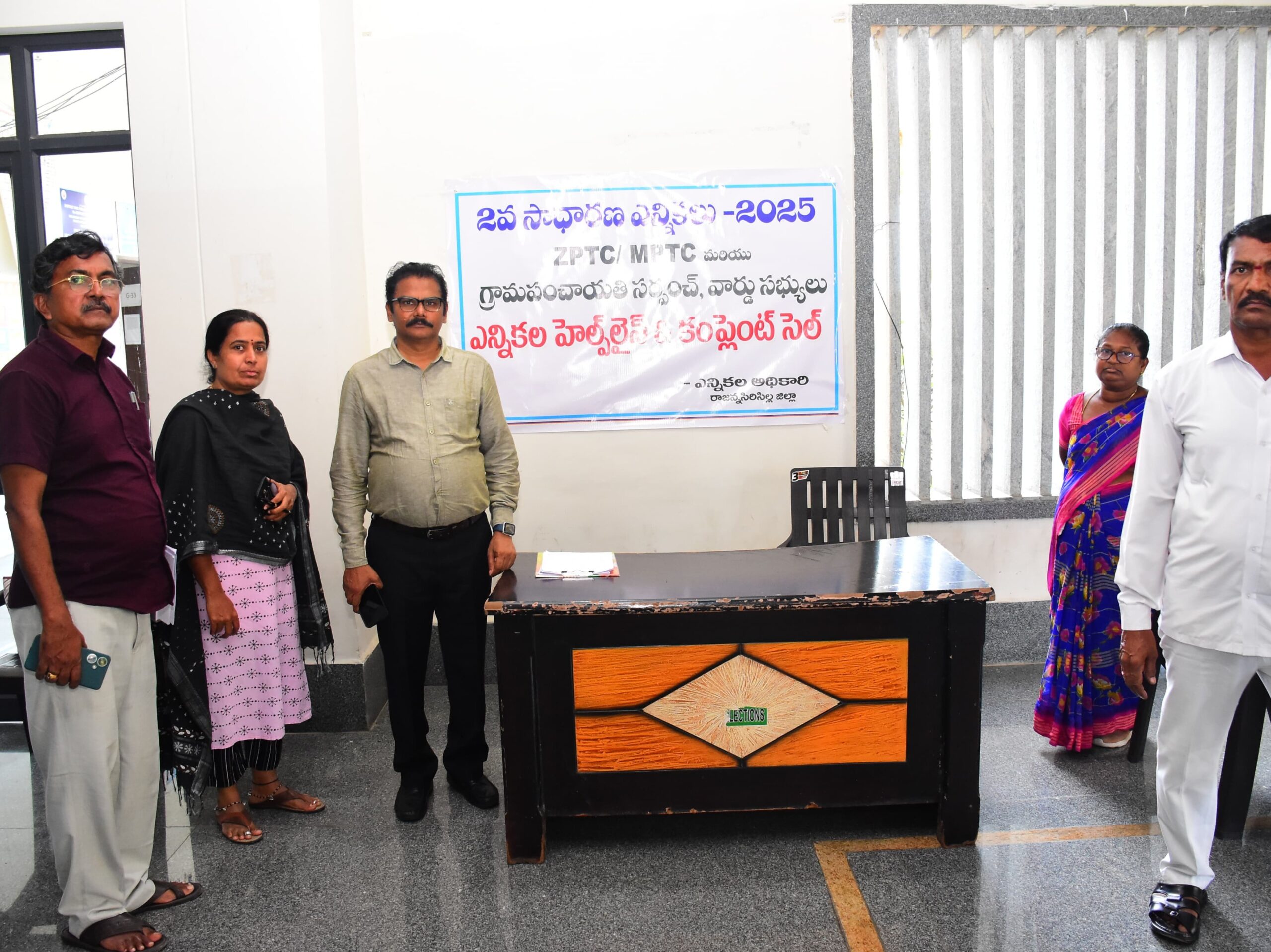SRCL: స్థానిక సంస్థల ఎన్నికల షెడ్యూల్ విడుదలైన నేపథ్యంలో జిల్లా సమీకృత కార్యాలయాల సముదాయంలో హెల్ప్ లైన్, ఫిర్యాదుల కేంద్రం బుధవారం ఏర్పాటు చేశారు. ఈ సందర్భంగా ఆ కేంద్రాన్ని అదనపు కలెక్టర్ గడ్డం నగేష్ ప్రారంభించారు. స్థానిక సంస్థల ఎన్నికల షెడ్యూల్ విడుదలైన నేపథ్యంలో హెల్ప్ లైన్, ఫిర్యాదుల కేంద్రం ఏర్పాటు చేశామని తెలిపారు.