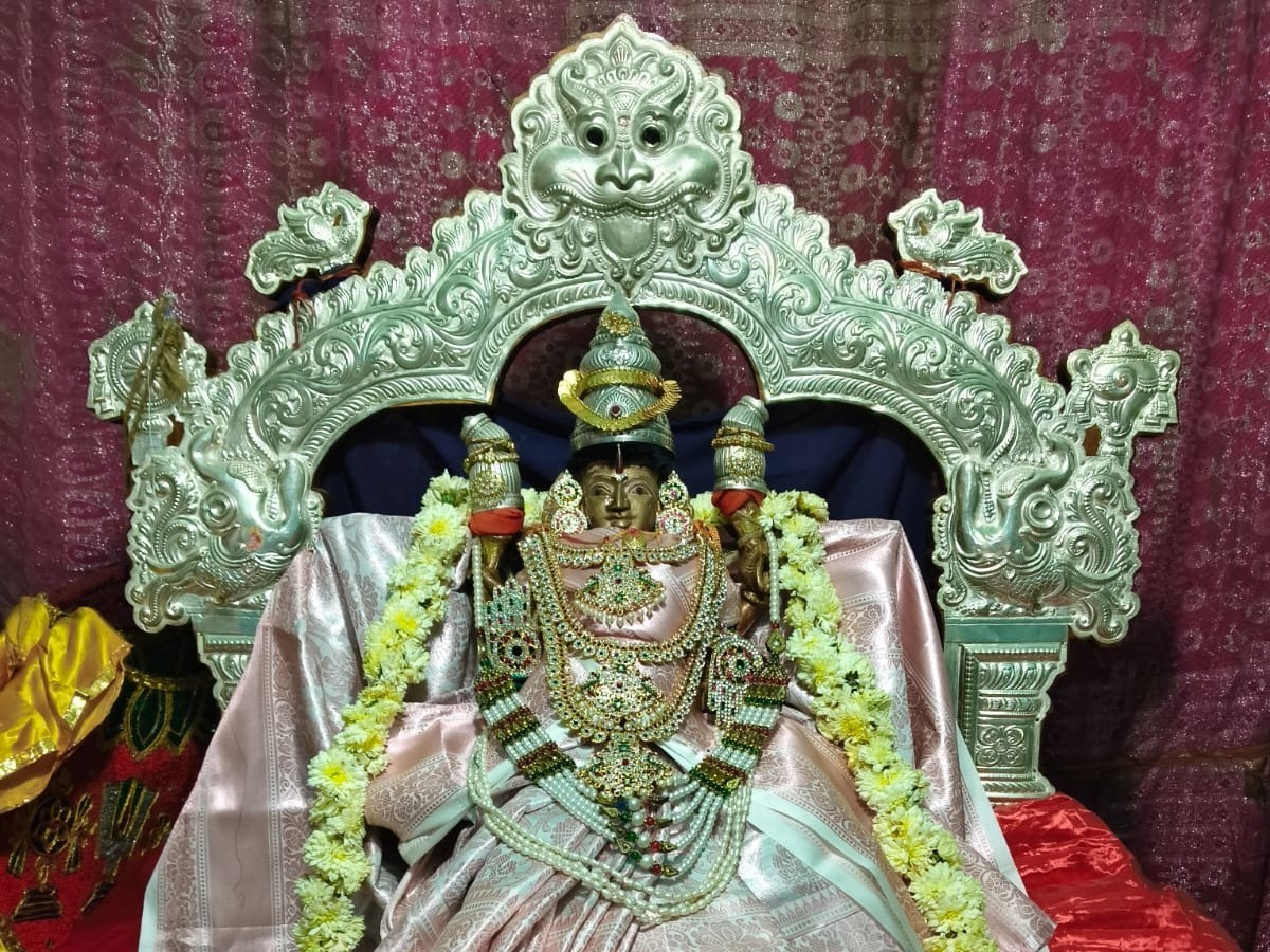 WGL: రాయపర్తి మండలం వెంకటేశ్వరపల్లిలోని స్వయం వ్యక్త శ్రీ వెంకటేశ్వరస్వామి ఆలయంలో బుధవారం శ్రీ మహాలక్ష్మి అమ్మవారు వైభవలక్ష్మి అలంకరణలో భక్తులకు దర్శనమిచ్చారు. ఆలయ అనువంశిక ధర్మకర్తలు, ఆలయ అభివృద్ధి కమిటీ, పూజారులు, వికాస తరంగిణి-సన్నూరు సేవా బృందం ఆధ్వర్యంలో శ్రీ మహాలక్ష్మి శరన్నవరాత్రి ఉత్సవాలను నిర్వహిస్తున్నారు.