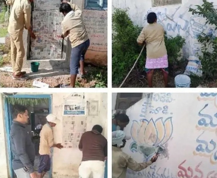 NZB: మోపాల్ మండలంలోని 21 గ్రామపంచాయతీల్లో ఎంపీటీసీ, జడ్పీటీసీ ఎలక్షన్ కోడ్ అమలులో ఉన్న నేపథ్యంలో పంచాయతీ కార్యదర్శులు వివిధ పార్టీలకు చెందిన వాల్ పోస్టర్స్, వాల్ పెయింటింగ్స్, పోస్టర్స్ను తొలగిస్తున్నారు. అలాగే రూ. 50వేలకు మించి డబ్బు వెంటబెట్టుకొని ప్రయాణం చేయరాదని గ్రామప్రజలకు అధికారులు తెలియజేస్తున్నారు.