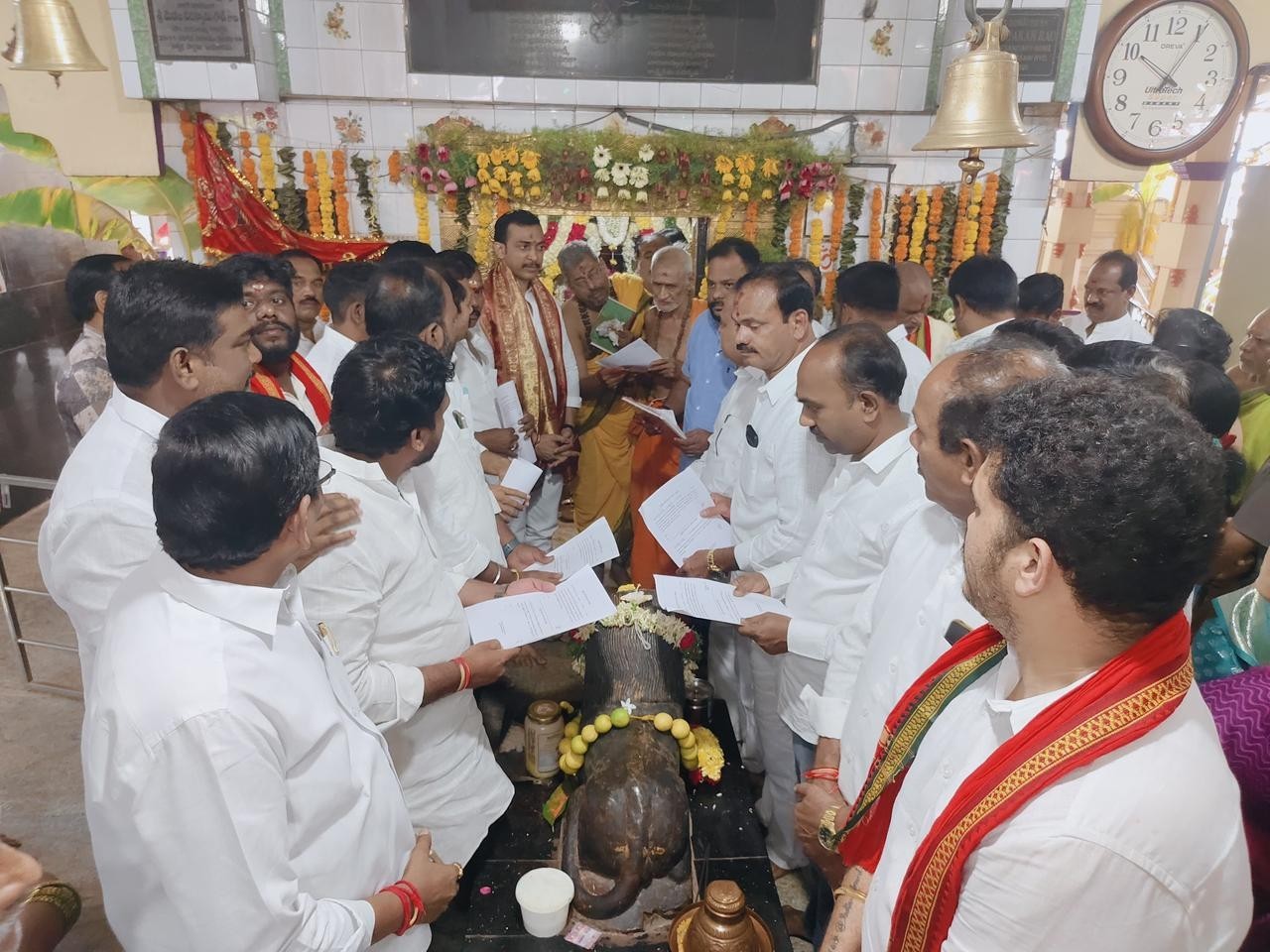 మేడ్చల్: ఉప్పల్ నియోజకవర్గ నాచారం మహంకాళి సహిత మహాకాళేశ్వర స్వామి దేవాలయంలో నూతనంగా ఎన్నికైన ఛైర్మన్, ధర్మకర్తలను ఘనంగా సన్మానించారు. బుధవారం జరిగిన ఈ కార్యక్రమంలో ఉప్పల్ నియోజకవర్గ ఇంఛార్జి మందముల పరమేశ్వర్ రెడ్డి పాల్గొన్నారు. ఈ సందర్భంగా ఆయన మాట్లాడుతూ.. కొత్తగా బాధ్యతలు చేపట్టిన పాలక మండలి సభ్యులు దేవాలయ అభివృద్ధికి కృషి చేయాలని సూచించారు.