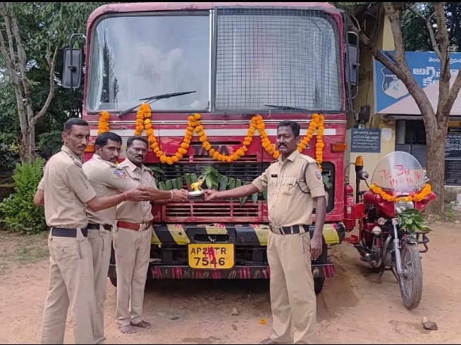 MNCL: జన్నారం మండల కేంద్రంలోని అగ్నిమాపక కేంద్రంలో ఉన్న వివిధ వాహనాలకు అగ్నిమాపక శాఖ అధికారులు, సిబ్బంది పూజలు నిర్వహించారు. దసరా పండుగ నేపథ్యంలో బుధవారం అగ్నిమాపక కేంద్రంలోని ఫైర్ ఇంజన్ బైకులు, అగ్నిమాపక పరికరాలకు స్థానిక ఫైర్ ఆఫీసర్ శ్రీనివాస్తో పాటు సిబ్బంది హారతి ఇచ్చి ప్రత్యేక పూజలు చేశారు. ప్రతి సంవత్సరం వాహనాలకు పూజలు చేయడం పరిపాటిగా వస్తుందన్నారు.