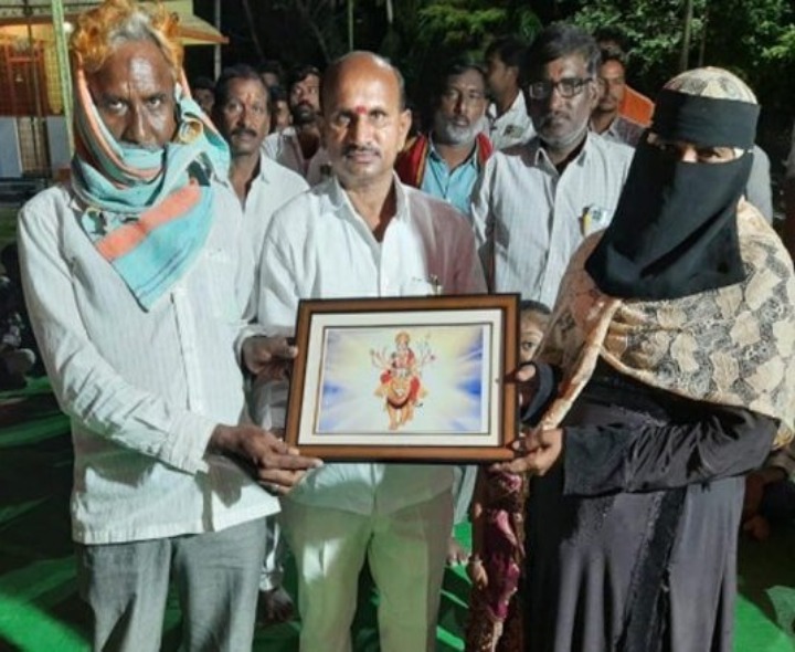 KMR: దేవి శరన్నవరాత్రి ఉత్సవాల్లో భాగంగా మద్నూర్లో నిర్వహిస్తున్న ఉత్సవాల్లో భాగంగా బుధవారం రాత్రి ముస్లిం దంపతులు అమ్మవారికి పూజలు చేసి మతసామరస్యాన్ని చాటుకున్నారు. వారు మాట్లాడుతూ.. దుర్గాదేవి ఆశీస్సులతో ప్రతి ఒక్కరూ సంతోషంగా ఉండాలని వేడుకున్నట్లు చెప్పారు. దుర్గామాత మండప నిర్వాహకులు వారికి అమ్మవారి మెమెంటోను బహుకరించి సత్కరించారు.