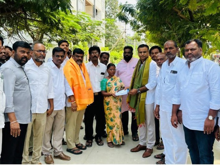 మేడ్చల్: గత రెండు సంవత్సరాల క్రితం జగద్గిరిగుట్ట డివిజన్ రాజీవ్ గృహకల్పలో నివాసముండే నరసింహులు అనే వ్యక్తి విద్యుత్ షాక్కు గురై మృతి చెందాడు. దీంతో ఎమ్మెల్యే కేపీ వివేకానంద్ బాధిత కుటుంబాన్ని ఆదుకోవాలని సంబంధిత అధికారులను కోరారు. ఈ నేపథ్యంలో విద్యుత్ శాఖ ద్వారా మంజూరైన రూ.5 లక్షల నష్టపరిహార చెక్కును ఆదివారం ఎమ్మెల్యే బాధిత కుటుంబానికి అందజేశారు.