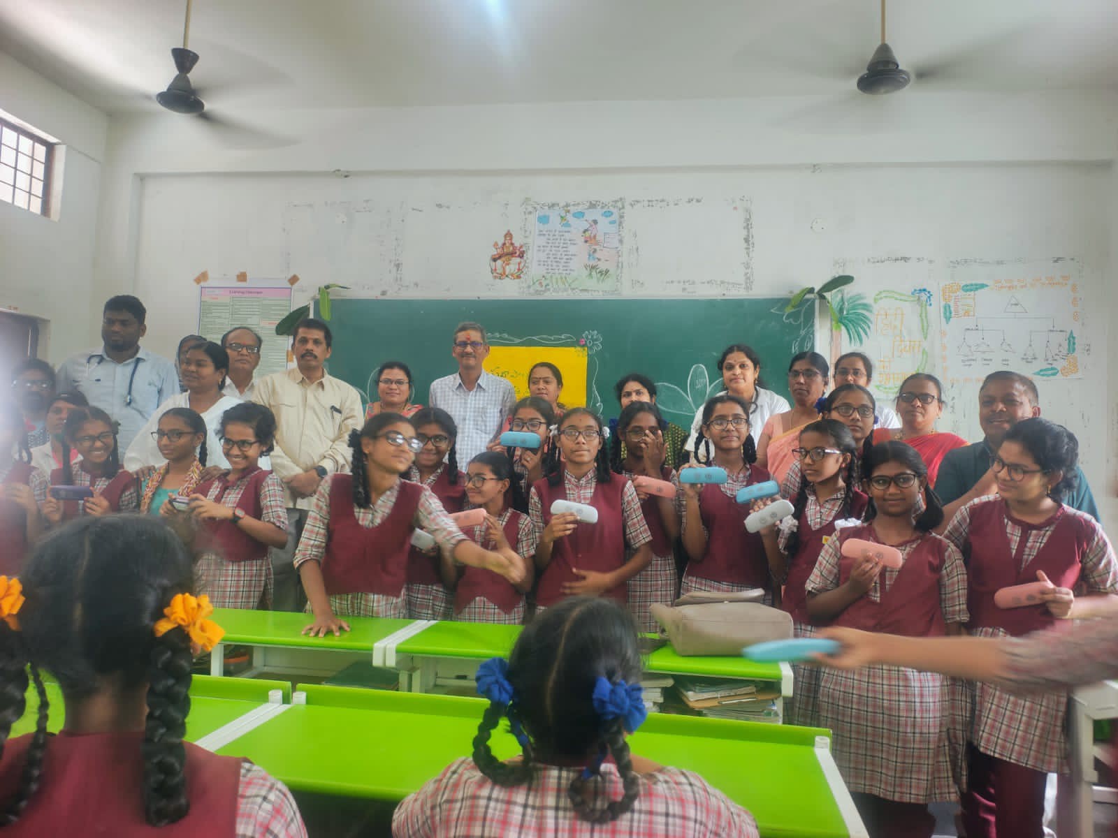 MNCL: నస్పూర్లోని కేజీబీవీ పాఠశాల, కళాశాలలో విద్యార్థినిలకు మంగళవారం కంటి పరీక్షలు నిర్వహించారు. ఈ సందర్భంగా 56 మందికి జిల్లా వైద్య ఆరోగ్యశాఖ అధికారి డాక్టర్ ఎస్. అనిత, కార్పొరేటర్ పుట్ట యశోద కంటి అద్దాలను పంపిణీ చేశారు. అనంతరం వారు మాట్లాడుతూ.. కంటి వ్యాధులు రాకుండా పోషకాహారాలు, విటమిన్ ఏకు సంబంధించిన ఆహార పదార్థాలు, ఆకుకూరలు తీసుకోవాలని సూచించారు.