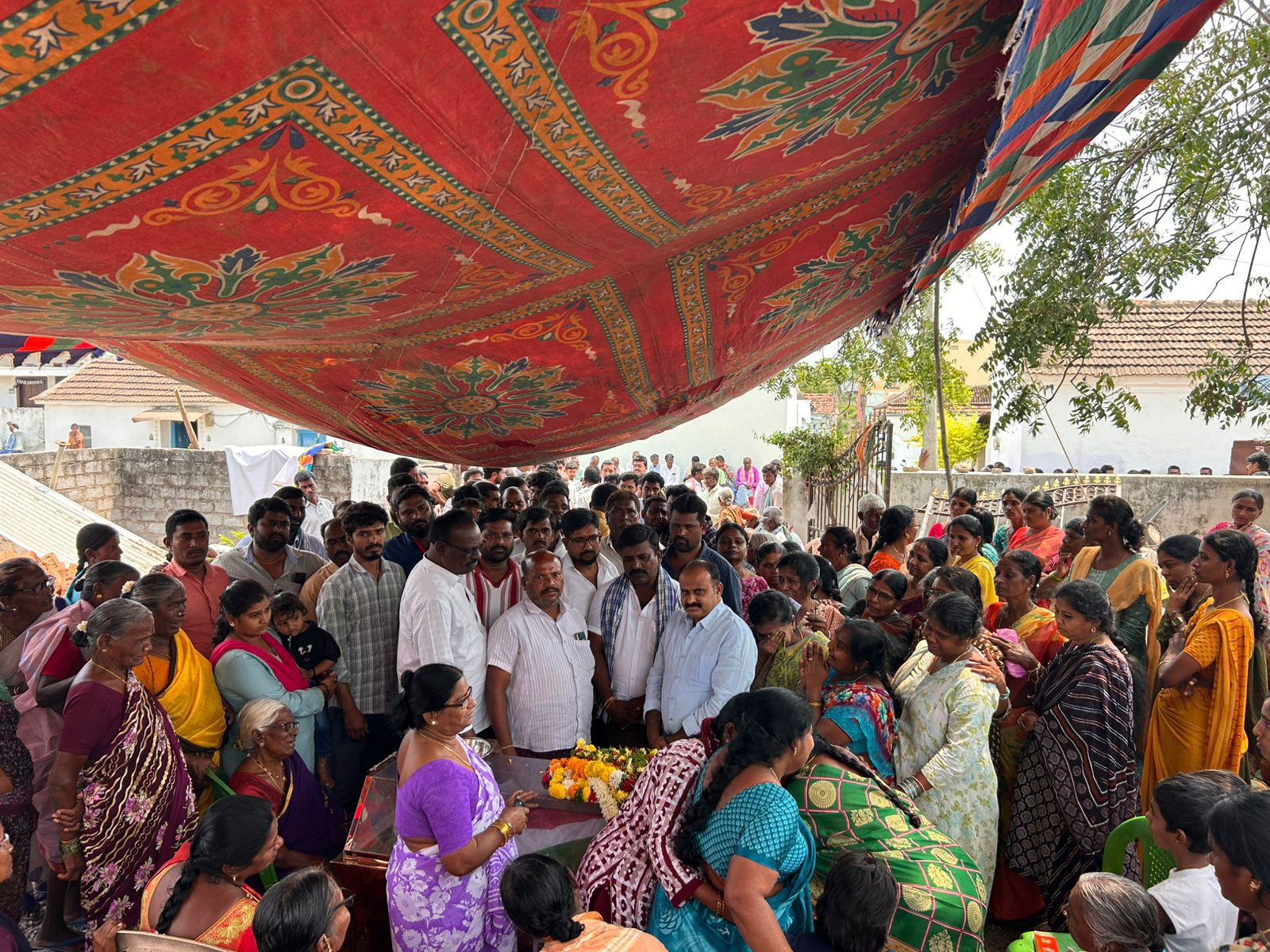 SRPT: నూతనకల్ మండలంలోని మిర్యాల గ్రామ సర్పంచ్ అనంతుల శ్రీనివాస్ మాతృమూర్తి ఆదివారం రాత్రి గుండెపోటుతో కన్నుమూశారు. ఈ విషయం తెలుసుకున్న తుంగతుర్తి మార్కెట్ కమిటీ ఛైర్మన్ తీగల గిరిధర్ రెడ్డి సోమవారం వారి నివాసానికి చేరుకుని, మృతురాలి పార్థివ దేహానికి పూలమాల వేసి నివాళులర్పించారు. అనంతరం వారి కుటుంబ సభ్యులను పరామర్శించి, తన ప్రగాఢ సానుభూతి తెలియజేశారు.