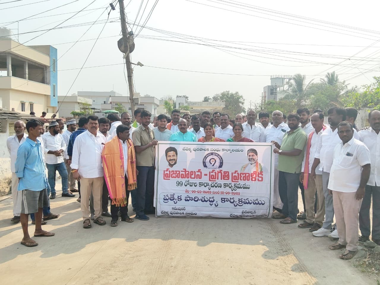 BHNG: ‘ప్రజా పాలన ప్రగతి ప్రణాళిక’ 99 రోజుల కార్యాచరణలో భాగంగా మోత్కూర్ మున్సిపాలిటీ 8వ వార్డులో ఆదివారం కార్యక్రమం నిర్వహించారు. కౌన్సిలర్ పన్నాల శ్రీవిద్య శ్రీనివాస్ రెడ్డి ఆధ్వర్యంలో జరిగిన ఈ కార్యక్రమానికి ముఖ్య అతిథిగా మున్సిపల్ ఛైర్పర్సన్ గడ్డం స్వప్న సోమనరసయ్య హాజరై ప్రారంభించారు. ఈ కార్యక్రమంలో వైస్ ఛైర్మన్ పల్లెర్ల వెంకన్న, పాల్గొన్నారు.