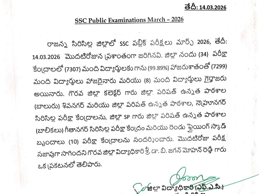 NLG: చిట్యాల పట్టణంలోని మూడు పరీక్షా కేంద్రాల్లో మొదటి రోజు జరిగిన పదవ తరగతి తెలుగు పరీక్షకు 415 మంది విద్యార్థులు హాజరయ్యారు. మొత్తం 417 మంది విద్యార్థులు పరీక్ష రాయవలసి ఉండగా.. ఒకరు గైర్హాజరుకాగా, మరొకరికి తెలుగు పరీక్ష నుంచి మినహాయింపు ఉన్నట్లు అధికారులు తెలిపారు. మొత్తం మీద మొదటి రోజు పరీక్ష ప్రశాంతంగా జరిగినట్లు వెల్లడించారు.