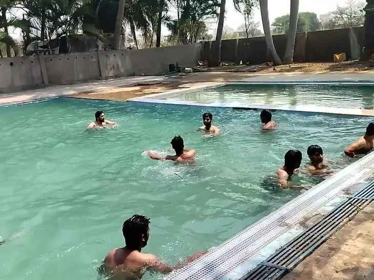 VKB: భగ భగ మండే ఎండలతో ఉక్కిరిబిక్కిరి అవుతున్న యువకులు స్విమ్మింగ్ పూల్స్ వైపు పరుగులు తీస్తున్నారు. జిల్లాలో రోజురోజుకు ఎండ తీవ్రతలు విపరీతంగా పెరుగుతుండడంతో ఎండ దెబ్బలు తట్టుకునేలా పాఠశాల విద్యార్థులు స్విమ్మింగ్ పూల్స్లో మునిగి ఈతలు కొడుతున్నారు. వడదెబ్బ బారీన పడకుండా మధ్యాహ్నం వేళ్ళల్లో బయటకు రావద్దని వైద్య నిపుణులు సూచిస్తున్నారు.