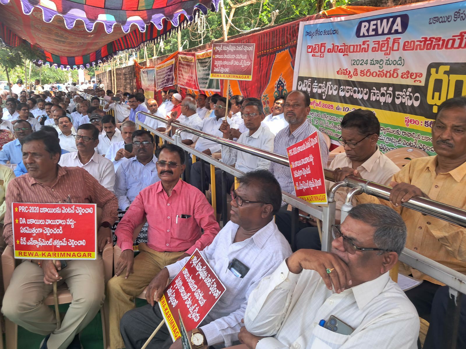KNR: 2024 మార్చి నుంచి పదవీ విరమణచేసిన ఉద్యోగుల బకాయిలు వెంటనే చెల్లించాలని,రిటైర్డ్ ఎంప్లాయిస్ వెల్ఫేర్ అసోసియేషన్ జిల్లాశాఖ డిమాండ్ చేసింది. మంగళవారం కలెక్టరేట్ ఎదుట ఉమ్మడి జిల్లా శాఖల ప్రతినిధులు, సభ్యులతో కలిసి మహాధర్నా నిర్వహించారు.ఈ సందర్భంగా ఆ సంఘం జిల్లా అధ్యక్షుడు కోహెడ చంద్రమౌళి మాట్లాడుతూ.. గత ఏడాదిన్నర నుంచి ఇప్పటివరకు ప్రయోజనాలు అందలేదన్నారు.