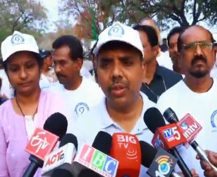 NLG: ప్రజా పాలన- ప్రగతి ప్రణాళిక కార్యక్రమంలో భాగంగా, నల్గొండ మున్సిపల్ కార్పొరేషన్ ఆధ్వర్యంలో సోమవారం ఎన్జీ కళాశాల మైదానం నుంచి క్లాక్ టవర్ వరకు 5కే రన్ నిర్వహించారు. నగర మేయర్ బుర్రి చైతన్య శ్రీనివాస్ రెడ్డి జెండా ఊపి ఈ కార్యక్రమాన్ని ప్రారంభించారు. ఈ సందర్భంగా ఆమె మాట్లాడుతూ.. ఆరోగ్యంగా ఉంటేనే అన్నీ ఉన్నట్లు అని ఆమె సూచించారు.